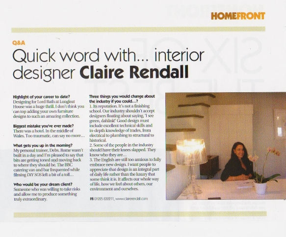 Claire's first interior project was for the Royal Opera House in Covent Garden followed by Rank Screen Advertising in Wardour Street, Soho. Since then, she's worked on properties including Lord Bath's penthouse at Longleat House, designed for and presented on BBC1's DIY SOS and has totally renovated two entire properties on Sydney's prestigious harbour side.